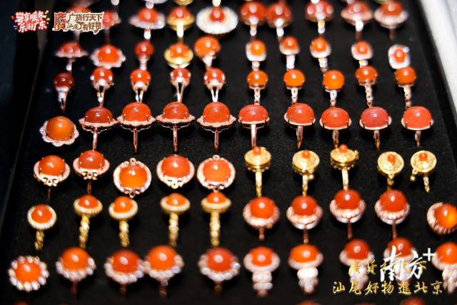 时值春节前夕,国贸商城内人潮涌动,年货采购氛围正浓。活动现场集中呈现了汕尾的特色农产品、海鲜美食、珠宝首饰与非遗文化,展示汕尾“好山好水出好物”的良好形象。“璀璨汕尾”展区内,由天然水晶、24k金、松石、红宝、碧玺等材质制成的耳环、胸针、项圈、手镯琳琅满目,吸引不少顾客驻足观赏。