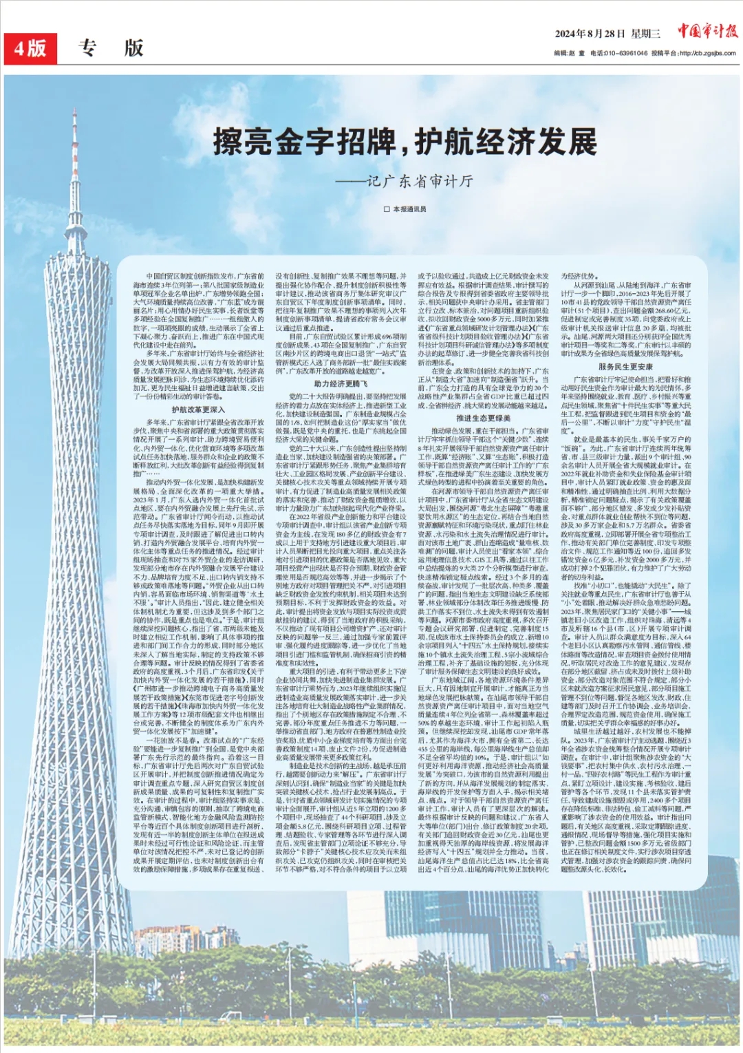 多年来,广东省审计厅始终与全省经济社会发展大局同频共振,以有力有效的审计监督,为改革开放深入推进保驾护航,为经济高质量发展把脉问诊,为生态环境持续优化添砖加瓦,更为民生福祉日益增进建言献策,交出了一份份精彩生动的审计答卷。