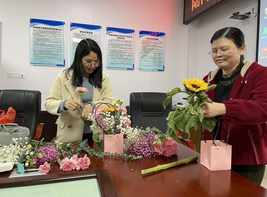 “人间三月芳菲始,又是一年花开时”。在春风和煦的阳春三月,“三八”妇女节来临之际,为进一步丰富全体女职工的精神文化生活,提升女职工幸福感、获得感,增强女职工凝聚力、向心力,3月7日下午,县统计局在一楼会议室举办了以“花艺展风姿,巾帼绽芳华”为主题的插花活动。通过借花抒怀,庆祝第114个“三八”国际妇女节,培养女性爱美、知美、会美的生活情趣。