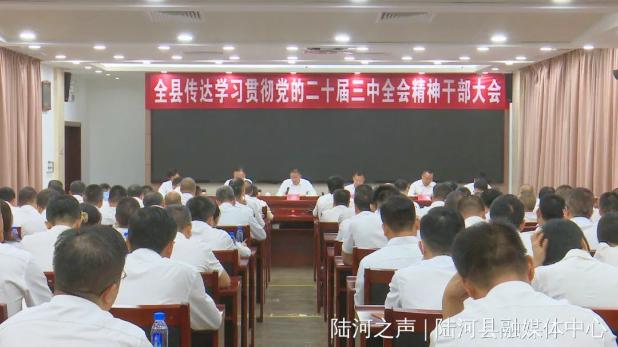 会议指出,党的二十届三中全会是在新时代新征程上,中国共产党坚定不移高举改革开放旗帜,紧紧围绕推进中国式现代化进一步全面深化改革而召开的一次十分重要的会议。习近平总书记在全会上的报告和重要讲话,系统总结党的二十届二中全会以来中央政治局的工作,深刻阐述进一步全面深化改革、推进中国式现代化的重大意义、总体要求、重大举措、根本保证等重大问题,具有很强的思想性、政治性、战略性、指导性,为做好当前和今后一个时期工作提供了根本遵循。全会审议通过的《中共中央关于进一步全面深化改革、推进中国式现代化的决定》,深入分析推进中国式现代化面临的新情况新问题,对进一步全面深化改革作出系统谋划和部署,是我们党历史上又一重要的马克思主义纲领性文献。全县上下要深入学习领会习近平总书记重要讲话精神和全会精神,增强学习宣传贯彻的政治自觉、思想自觉、行动自觉,立足陆河实际,开拓创新、深谋实干,切实把全会部署转化为推动高质量发展的实际成效。要认真学习领会习近平总书记代表中央政治局所作报告的重要精神,更加坚定自觉坚持“两个确立”、做到“两个维护”,坚定不移沿着习近平总书记指引的方向前进。要深刻理解把握习近平总书记、党中央关于进一步全面深化改革的战略部署和《决定》精神,准确把握进一步全面深化改革的重大意义、主题、重大原则、目标任务,确保改革沿着正确方向前进。