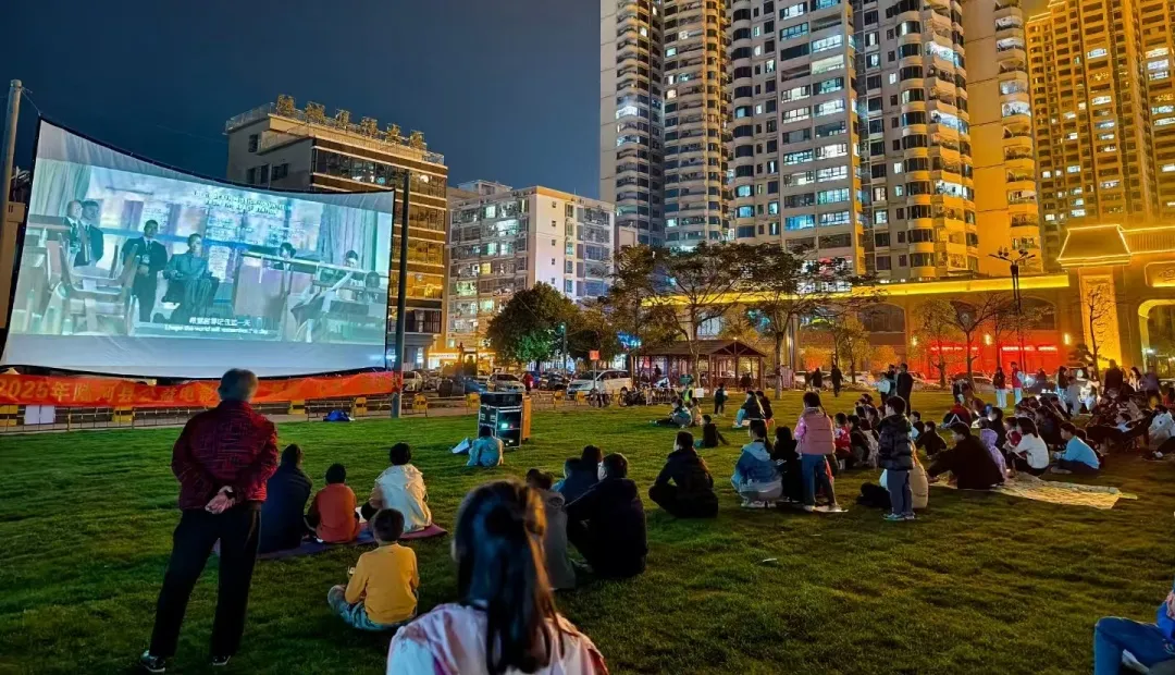 3.活动内容:依托十大绿地草坪公园,开展公益电影放映活动,将优秀影视作品送到群众身边,把先进的思想文化传播到基层。结合实际在每场电影放映前向群众开展5-10分钟的“百千万工程”“绿美建设”“入户联心”、文明乡风建设(移风易俗)等政策宣讲。播放“扫黄打非”、禁毒宣传、森林防火、文明交通、扫黑除恶、爱国主义教育等主题的公益小视频,普及法律与安全知识,传递社会主义核心价值观,营造崇尚文明新风的浓厚氛围。
