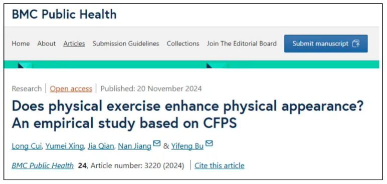 2024年11月20日,江苏师范大学的研究人员在《BMC公共卫生》期刊上发表的一项研究显示,运动可以显著改善外貌。其中,中年人的改善最为显著。①
