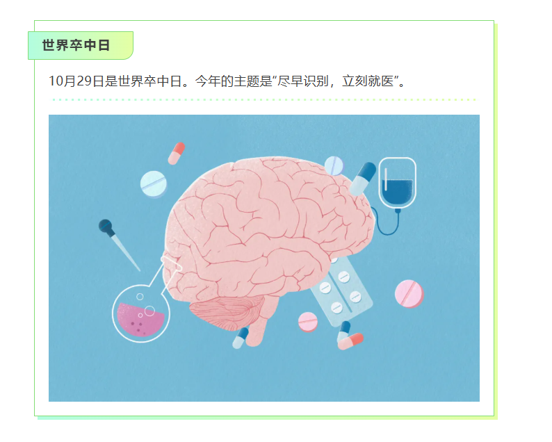 无论是缺血性卒中还是出血性卒中,时间就是生命,时间就是大脑,越早发现,越早治疗,效果越好。发病后要立即拨打120急救电话,听从专业建议去往最近的具有卒中急救能力的医院救治。