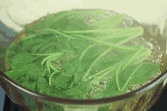 好在草酸易溶于水,热水焯就能去除掉大部分的草酸。有研究显示:将 180 克菠菜置于 1000 毫升沸水中在分别焯水 1 分钟、2 分钟、3 分钟、4 分钟的情况下,可溶性草酸去除率分别为 43%、50%、54.7%、58.9%。而油炒对菠菜中草酸的去除率并不高,都不超过 5% ,即使增加烹调油用量作用也不大。