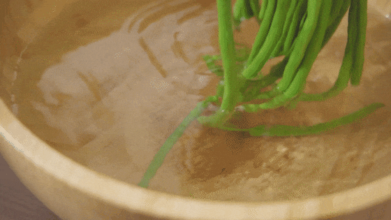 对于叶菜类大多只需要焯水 1 分钟即可,另外建议先焯水再切菜,焯好后立刻放在冷水中降温,沥干即可,不要过分挤压,避免营养流失。