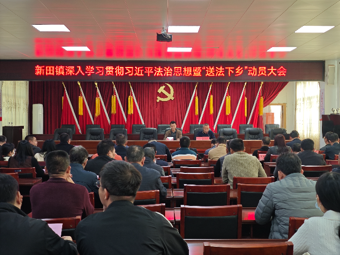 为深入贯彻落实县委、县政府工作部署,切实提高群众对土地资源管理的认识,普及土地管理法律法规知识,近日,新田镇召开“送法下乡”动员大会暨用地建设“十不准”学习会,会议传达学习“全县深入学习贯彻习近平法治思想暨“送法下乡”动员大会”会议精神,严格落实“谁执法谁普法”工作责任,明确“谁来送”、找准“送什么”、理清“怎么送”,切实增强普法工作针对性实效性,确保“送法下乡”取得扎实成效。镇直相关部门负责人、各村(社区)书记主任、各村村民小组长、网格员参加会议。