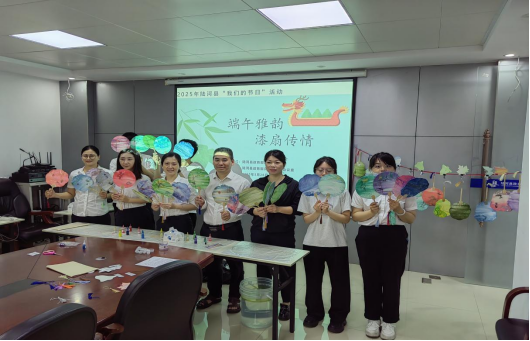 非遗传承,漆扇生花。活动通过视频、图文为大家揭秘漆扇制作工艺,从漆扇的历史渊源到漆扇制作中扇骨选材、扇面绘制、漆艺装饰等步骤背后的故事,精湛的技艺与深厚的文化底蕴,听得大家赞叹连连。实操环节,干部职工们纷纷化身“小小漆扇匠人”,调色、勾勒、上色,大家专注认真,将端午元素如粽子、龙舟、艾草等融入扇面设计,赋予漆扇独特的节日韵味。活动现场不时传出交流讨论声与欢笑声,大家相互切磋技艺,分享创作灵感,在合作中感受传统文化的魅力,在实践中体会匠心精神的传承。